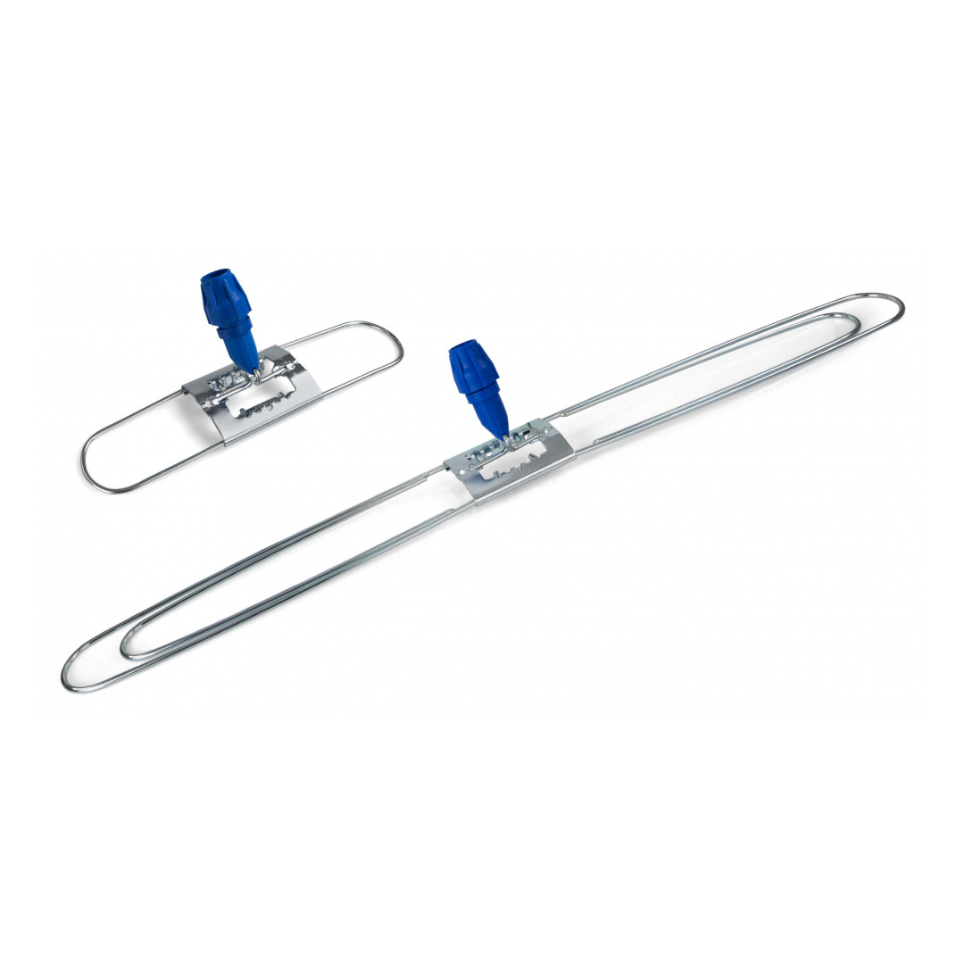 Łamany metalowy stelaż (wzmocniona konstrukcja) do mopa, z niebieskim uchwytem wykonanym z wysokiej jakości tworzywa sztucznego.